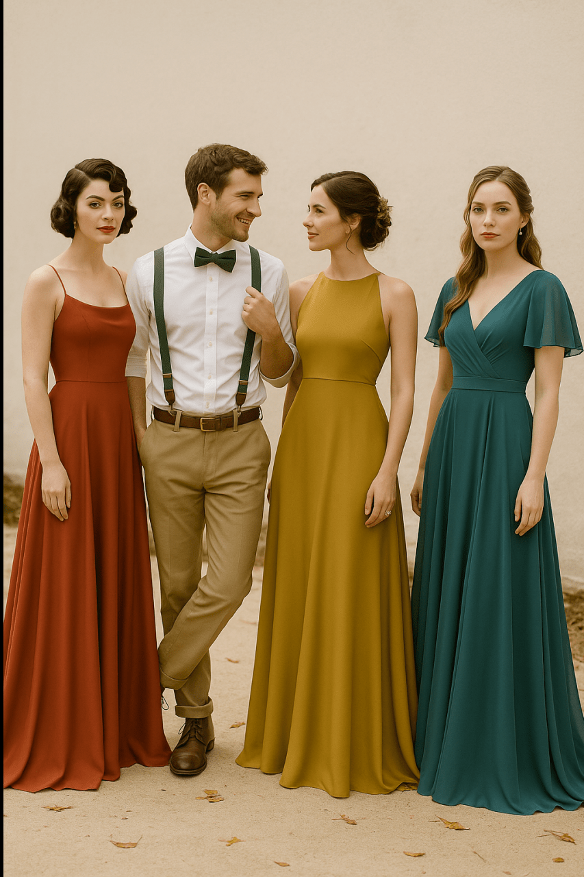 Aqui abaixo, você encontrará referências de vestidos, combinações de cores e ideias para se inspirar, sempre respeitando o estilo de cada uma — porque o mais importante é que você se sinta linda e confortável. (Lembrando que pode esfriar, então estejam preparadas)